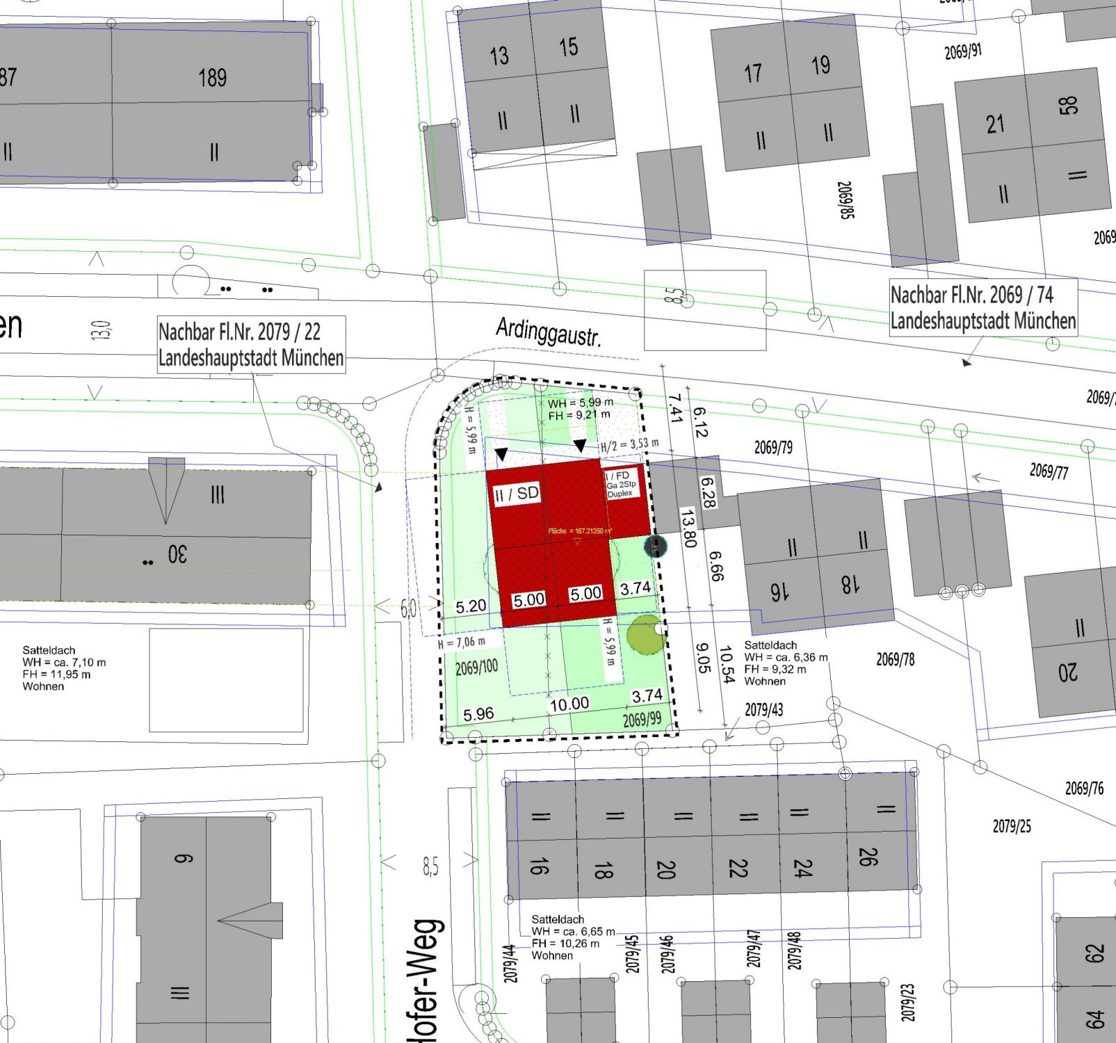 Kleines Eckgrundstück im Süden Münchens | Erarbeitung Konzeption für Wohnnutzung | Erstellung Antrag auf Vorbescheid