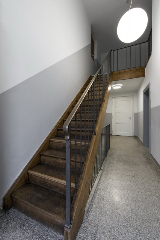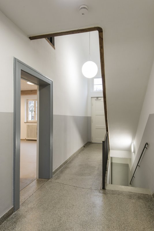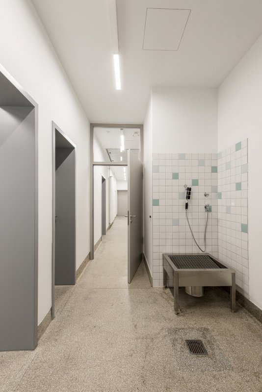 Umstrukturierung und Umbau des Betriebshofs sowie des Betriebsgebäudes am Friedhof am Perlacher Forst. Das Betriebsgebäude ist Teil eines denkmalgeschützten Gebäudekomplexes auf dem Gelände des Friedhofs und schließt direkt an die Aufbahrung und die Trauerhalle an. Daran angeschlossen befindet sich der ca. 1500 m² große Betriebshof. Im Betriebsgebäude befinden sich die Sozialräume der Mitarbeiterinnen und Mitarbeiter auf drei Etagen (UG, EG und OG) verteilt. Zur Anpassung an die heutigen Anforderungen des Arbeitsschutzes wurden die Aufenthalts-, Umkleide- und Sanitärräume, Besprechungsraum, Büro sowie Technik und Lagerräume neu gestaltet. Für die Umstrukturierung und Integration der neuen Räume in die bestehende Gebäudestruktur mussten umfangreiche Änderungen an der Raumaufteilung und Erschliessung vorgenommen werden. Die Gebäudehülle blieb unangetastet. Die Außenfenster wurden denkmalgerecht instandgesetzt bzw. soweit erforderlich erneuert.