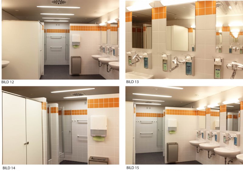 Neuordnung der Flächen und Einplanung von Sanitärbereichen, bestehend aus WC-Anlagen und Waschbereichen