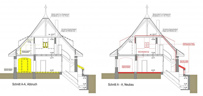 Sanierung südliches Pförtnerhaus Waldfriedhof, Alter Teil
