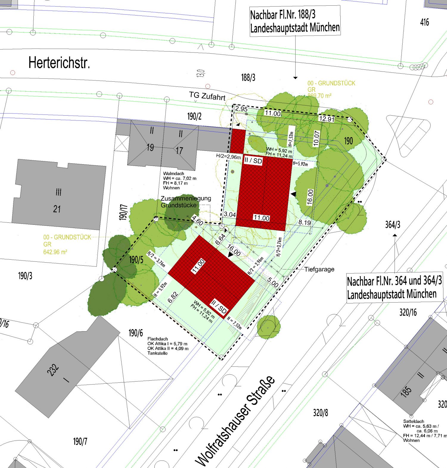 Kleines Eckgrundstück im Süden Münchens | Erarbeitung Konzeption für Wohnnutzung | Erstellung Antrag auf Vorbescheid